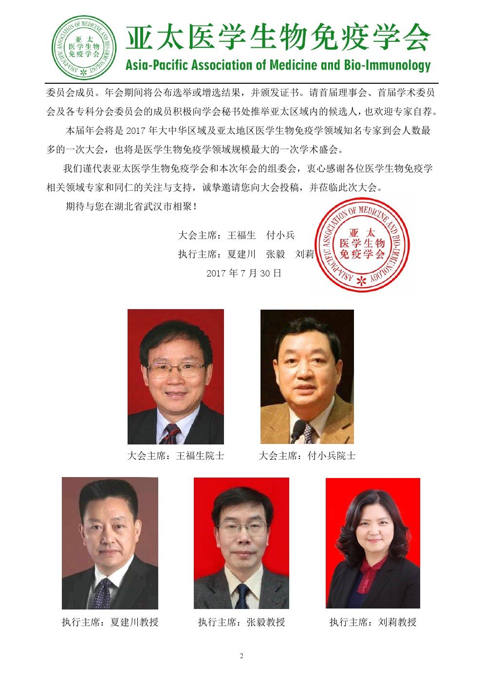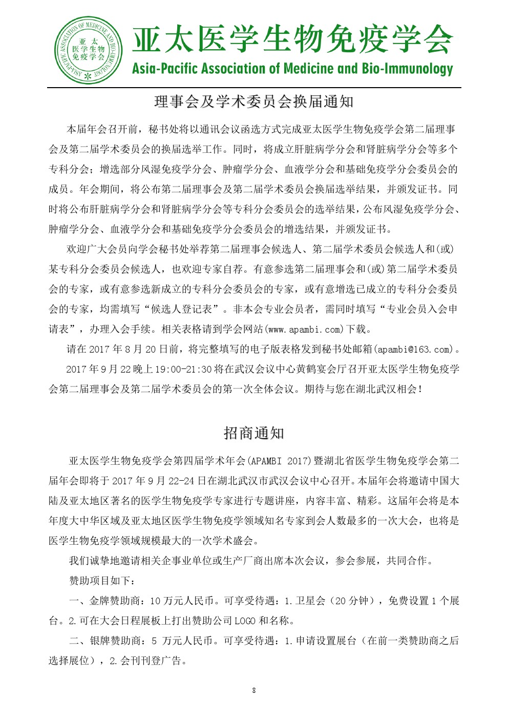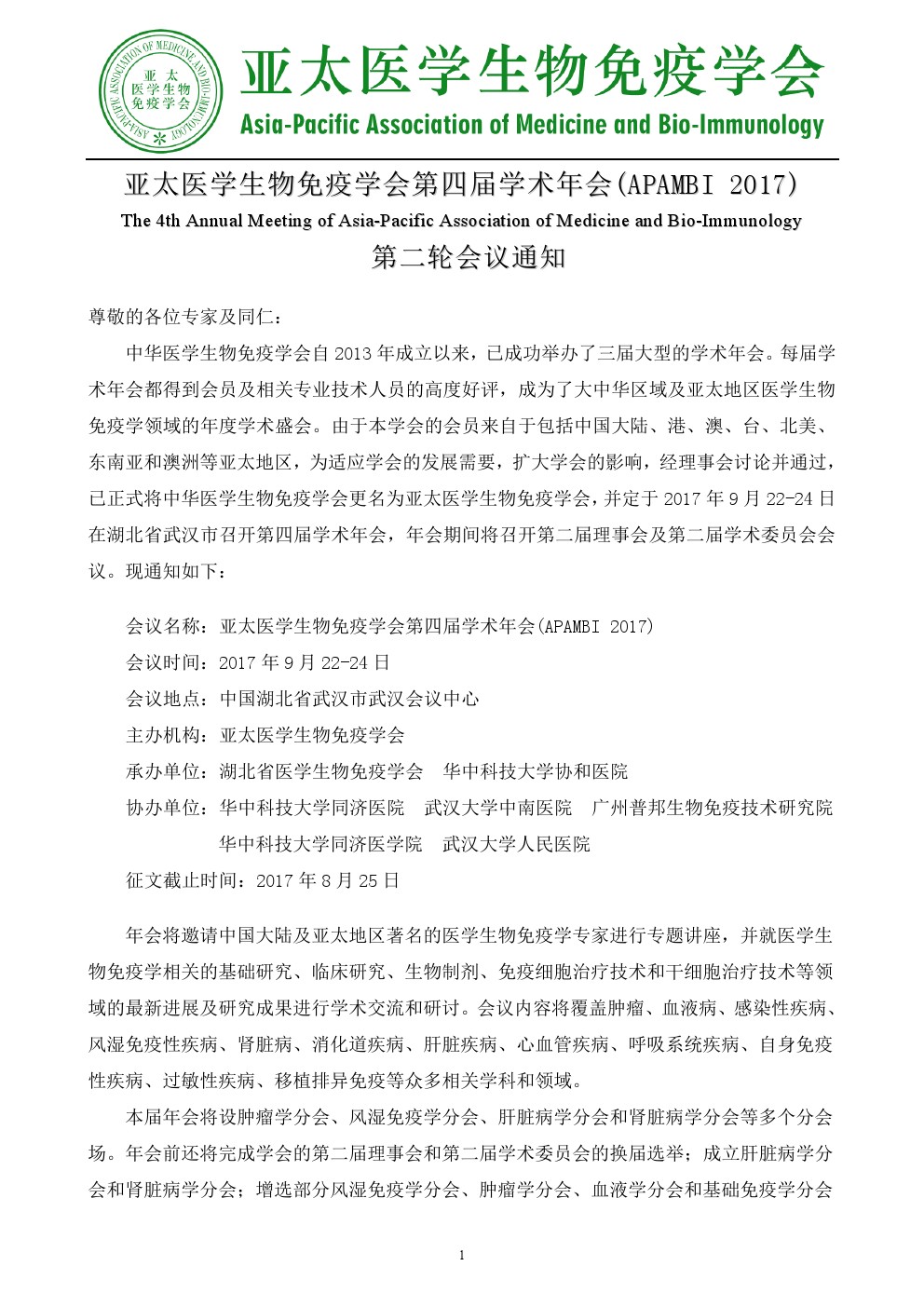 亚太医学生物免疫学会第四届学术年会(APAMBI 2017)第二轮会议通知