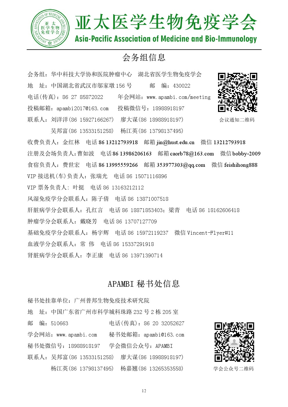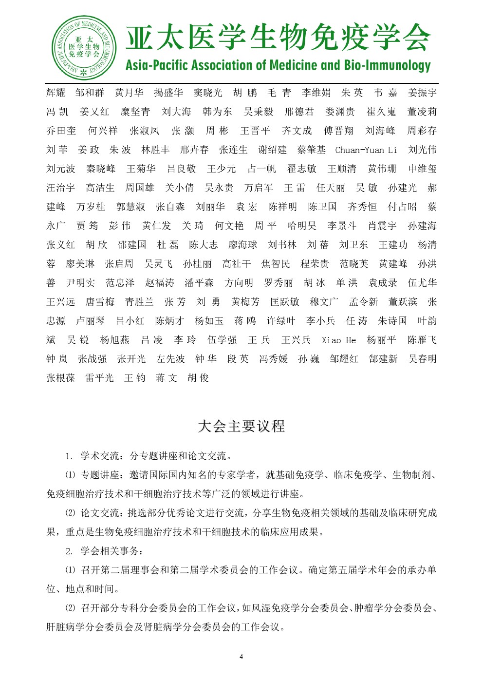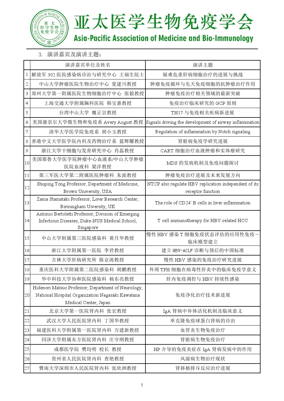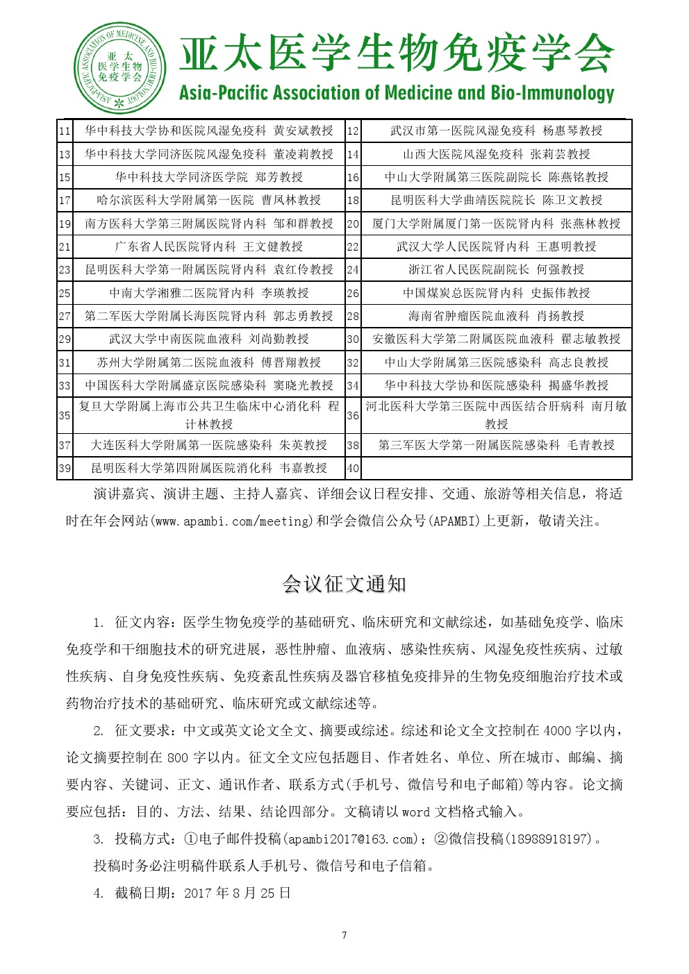 亚太医学生物免疫学会第四届学术年会(APAMBI 2017)第二轮会议通知