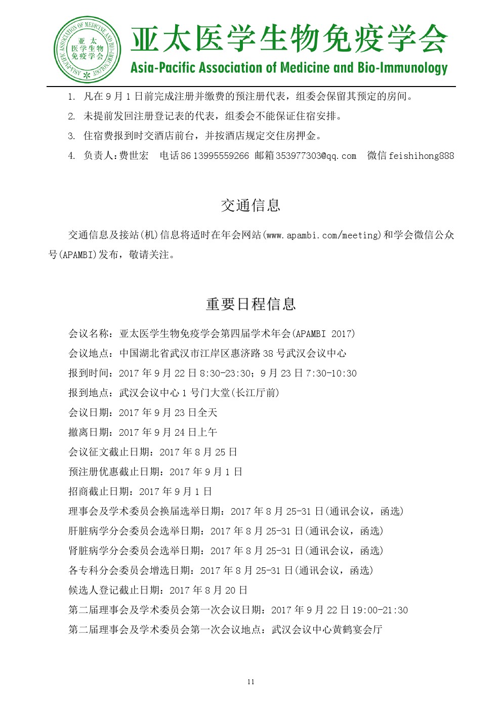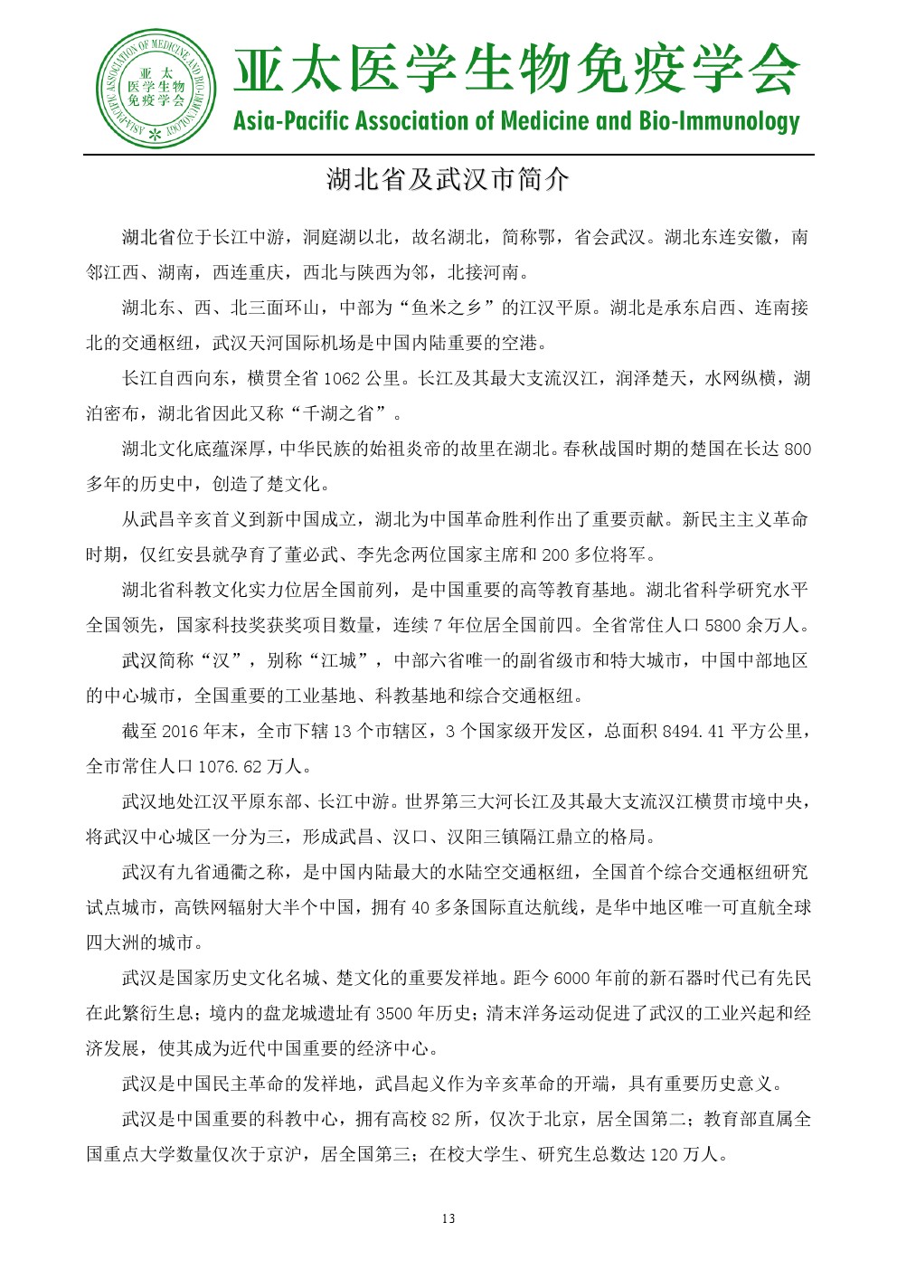 亚太医学生物免疫学会第四届学术年会(APAMBI 2017)第三轮会议通知