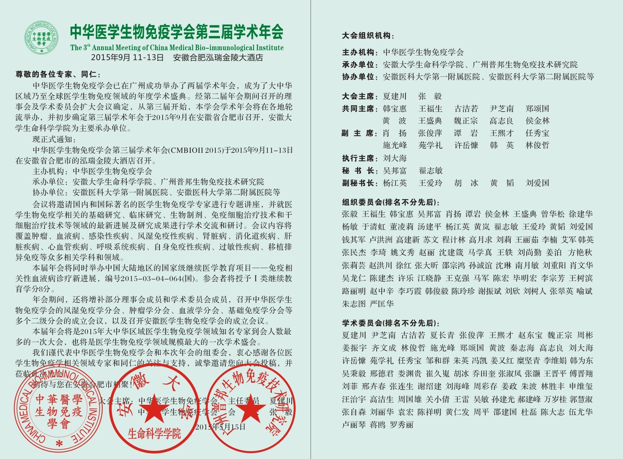 - 2015-08-19中华医学生物免疫学会理事会及学术委员会工作会议通知暨VIP晚宴邀请函
